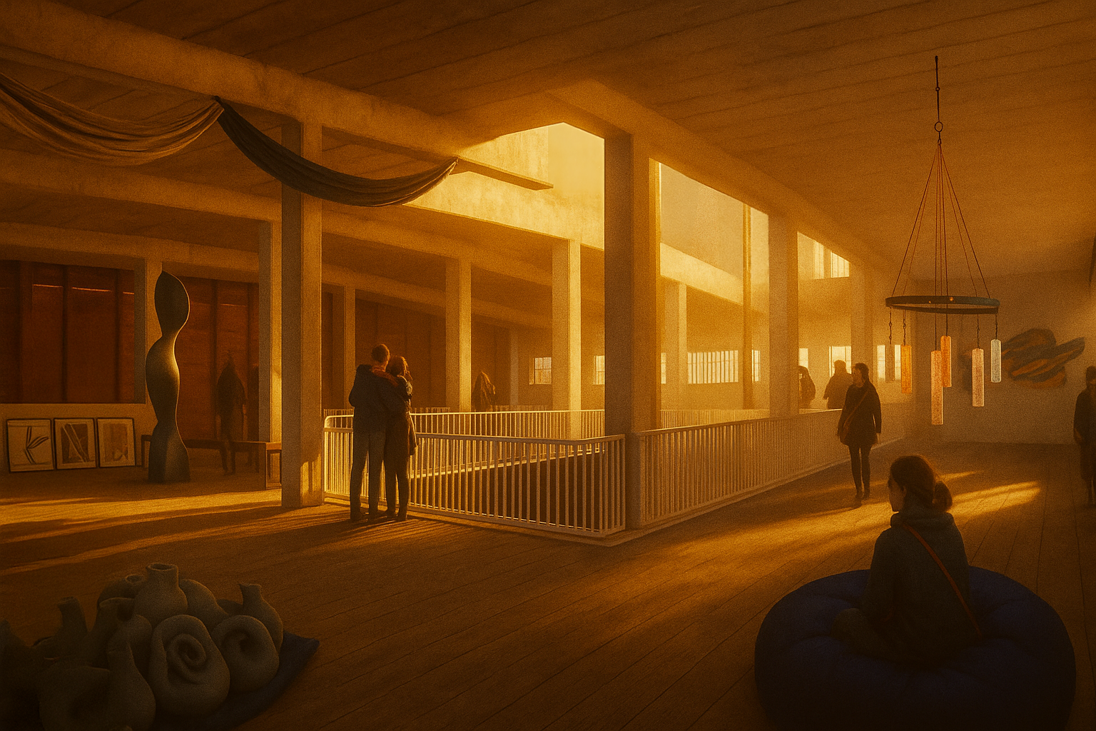 The transformation introduces an art gallery with temporary and permanent exhibitions, supported by archives, workshops and a café. New interventions emphasize contrast between the heavy concrete and warm timber, enhancing the original structure without overpowering it.