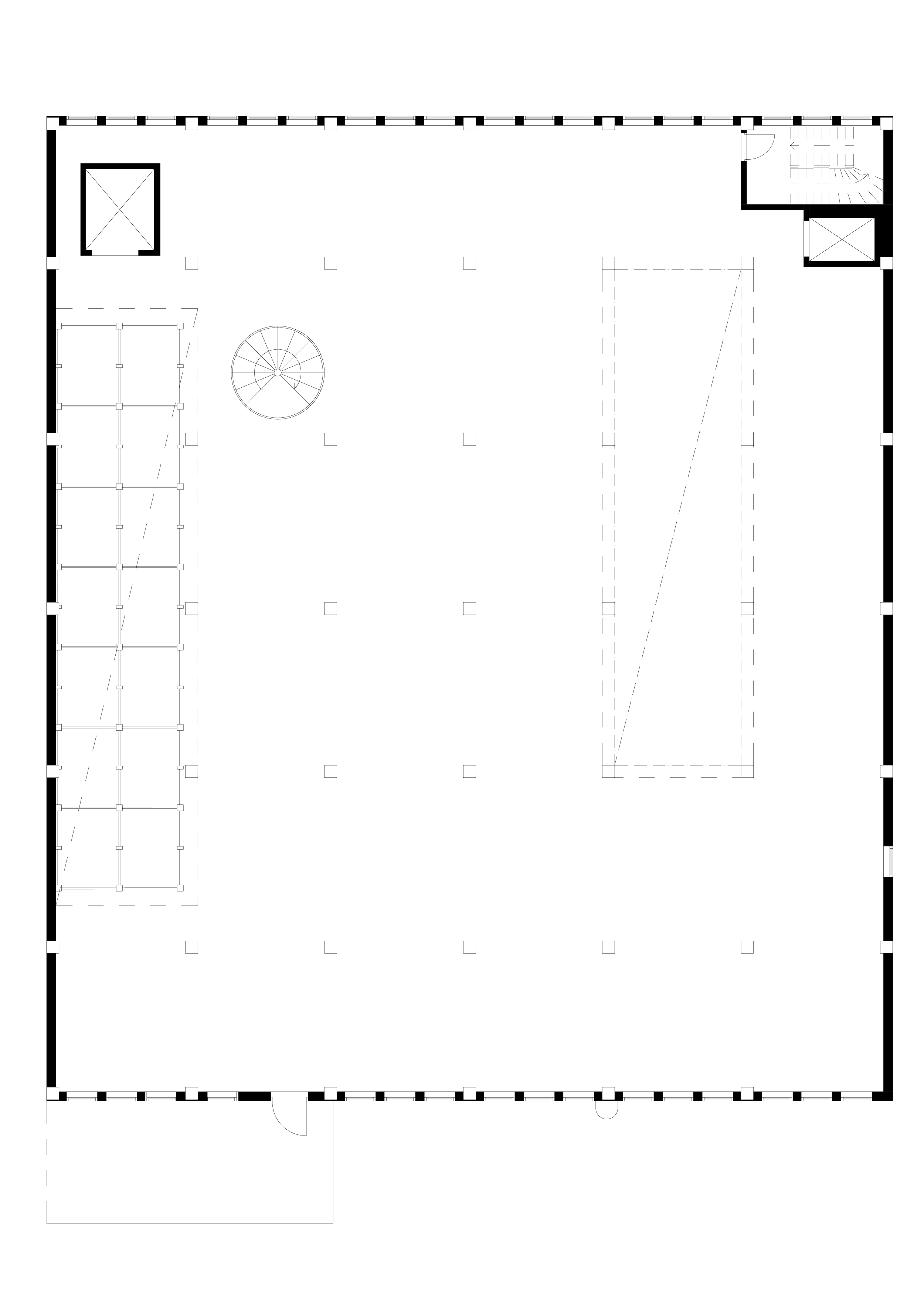 The plans reveal the building’s four floors, defined by a strict column grid and the vertical timber silo. These preserved elements form the backbone for a flexible, efficient program.